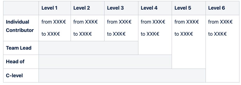 - Les responsabilités managériales. Certains rôles n’incluent pas du tout de management, alors que d’autres postes ont plusieurs niveaux de management dans l’entreprise. Nous avons fait un choix un peu inconventionnel : une personne peut atteindre le plus haut niveau de rémunération, qu’elle exerce des responsabilités managériales ou non. Nous considérons le management comme un métier en soi et non comme un passage obligé en vue d’accéder à un plus haut niveau de rémunération. Autrement dit, à chaque niveau de management correspond un niveau de contribution individuelle. En revanche, il est nécessaire d’atteindre un certain niveau de contribution individuelle avant de pouvoir évoluer vers un poste en management.